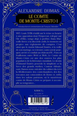 1815. Louis XVIII rétabli sur le trône se heurte à une opposition dont l'Empereur, relégué à l'île d'Elbe, songe déjà à profiter. Dans Marseille livrée à la discorde civile, le moment est propice aux règlements de comptes politiques ou privés. C'est ainsi que le marin Edmond Dantès, à la veille de son mariage, se retrouve, sans savoir pourquoi, arrêté et conduit au château d'If... Paru en 1844-1846, Le Comte de Monte-Cristo connut un succès qui ne s'est pas démenti, ce qui en fait une des oeuvres les plus populaires de la littérature mondiale. L'abbé Faria, l'évasion inouïe, le trésor grâce auquel les bons seront récompensés et les traîtres punis le fabuleux destin d'Edmond Dantès possède la simplicité et la force des grands mythes. Conteur éblouissant, aussi à l'aise dans l'action que dans le dialogue, Dumas nous entraîne sans nous laisser reprendre souffle du cabinet de Louis XVIII à la Méditerranée des contrebandiers, des îles toscanes aux catacombes de Rome, puis aux salons parisiens où le mystérieux comte de Monte-Cristo se dispose à accomplir sa vengeance...