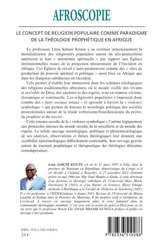 Le professeur Léon Sabuni Kitutu a su restituer astucieusement la mondialisation des religiosités populaires autour du néo-pentecôtiste américain et leur autonomie spirituelle par rapport aux Églises institutionnelles issues de la projection missionnaire de l'Occident en Afrique. Ces Églises de réveil s'auto-promeuvent comme des sites de production du pouvoir spirituel et politique aussi bien en Afrique que dans les diasporas subalternes en Occident. Cela permet d'établir leur immersion dans les schèmes étiologiques des religions traditionnelles africaines, où le monde visible des vivants et invisible de Dieu, des ancêtres et des esprits, sont en osmose vivante, dynamique et continuelle. Les religiosités populaires s'imposent donc comme des faits sociaux totaux et agissent à travers la violence symbolique qui permet de brosser la sociologie politique des sociétés postcoloniales autour de la triade weberienne/bourdieusienne du prêtre, du prophète et du sorcier. Cette essence occulte de la violence symbolique l'arrime logiquement aux protocoles internes du monde occulte de la sorcellerie et du monde des esprits. Le solide ancrage sociologique, politique et phénoménologique de ses analyses, observations et thèses théologiques leur donnent une crédibilité épistémologique difficilement contestable. Son ouvrage gravite autour du tournant prophétique et thérapeutique des théologies africaines contemporaines.