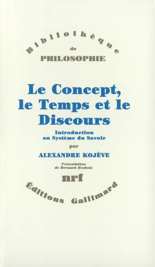 La philosophie a commencé d'exister comme une réflexion sur les discours des rhéteurs et des sophistes : elle interroge donc les discours sur leurs conditions de possibilité et sur leurs finalités. Cette question elle-même est discutée, et elle obéit à une perspective commandée par la logique et l'exigence qui la fonde, c'est-à-dire l'exigence de vérité. Parler en philosophe c'est parler tant de l'essence des choses que du sens des discours qui s'y rapportent : mais tenir un tel discours signifie qu'on se tient sur un terrain de relative extériorité : on tient un discours qui n'est ni tout à fait essence ni tout à fait sens, mais qui apparaît comme participant des deux registres - c'est cela le point de vue du concept. Le concept comme unité de l'essence et du sens est ce qui supporte ainsi, et en tant que tel, la vérité. Or celle-ci est découverte à un moment donné de l'histoire, mais prétend aussi être nécessaire, donc, intemporelle : cette tension fait obligation de penser le temps. Ainsi les trois dimensions, discours, concept et temps, s'articulent-elles. Ce texte est la plus importante et la plus achevée des ébauches inédites du système philosophique propre de Kojève.