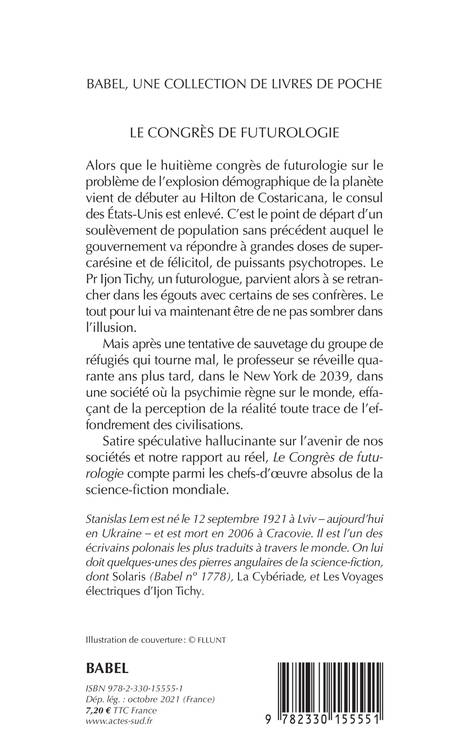 Alors que le huitième congrès de futurologie sur le problème de l'explosion démographique de la planète vient de débuter au Hilton de Costaricana, le consul des États-Unis est enlevé. C'est le point de départ d'un soulèvement de population sans précédent auquel le gouvernement va répondre à grandes doses de supercarésine et de félicitol, de puissants psychotropes. Le Pr. Ijon Tichy, un futurologue, parvient alors à se retrancher dans les égouts avec certains de ses confrères. Le tout pour lui va maintenant être de ne pas sombrer dans l'illusion. Mais après une tentative de sauvetage du groupe de réfugiés qui tourne mal, le professeur se réveille quarante ans plus tard, dans le New York de 2039, dans une société où la psychimie règne sur le monde, effaçant de la perception de la réalité toutes traces de l'effondrement des civilisations. Satire spéculative hallucinante sur l'avenir de nos sociétés et notre rapport au réel, "Le Congrès de futurologie" compte parmi les chefs-d'oeuvre absolus de la science-fiction mondiale.