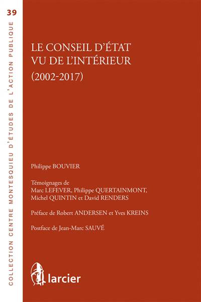 Au fil des ans, les nominations, les promotions, les mises à la retraite de plusieurs membres du Conseil d’État, mais aussi malheureusement le décès de certains d’entre eux ont conduit l’auteur, à la faveur d’allocutions prononcées en leur honneur, à mettre en exergue toutes les qualités qui sont les leurs et qui se révèlent être autant de facteurs clés pour le bon accomplissement des missions dont le Conseil d’État est chargé. Ces instants furent aussi parfois l’occasion d’évoquer les préoccupations du moment, de même que certaines leçons que l’Histoire nous apprend. Le Conseil d’État, vu de l’intérieur…