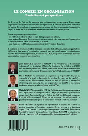 Ce livre est le fruit de la rencontre des préoccupations convergentes d'associations impliquées dans le métier de consultant en organisation. Il rend tout d'abord compte de la pratique des auteurs, puis présente une analyse historique des relations et interactions entre les mouvements d'organisation et l'environnement social, économique et culturel. Enfin, il étudie les problématiques émergentes et l'évolution du métier.