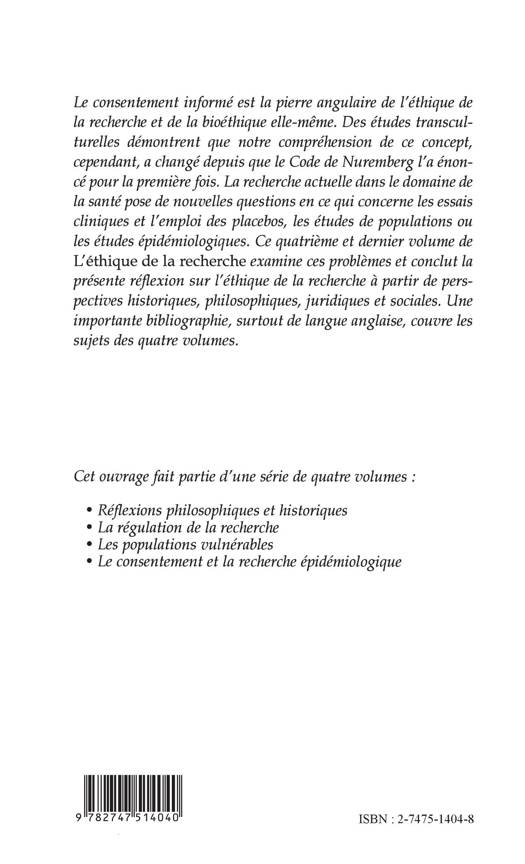 Le consentement informé est la pierre angulaire de l'éthique de la recherche et de la bioéthique elle-même. La recherche actuelle dans le domaine de la santé pose de nouvelles questions en ce qui concerne les essais cliniques et l'emploi des placebos, les