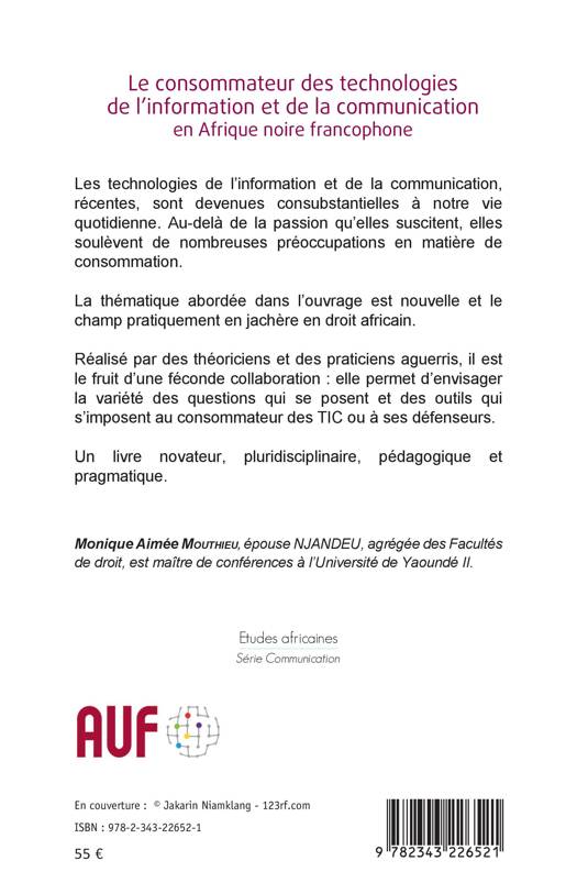 Les technologies de l'information et de la communication, récentes, sont devenues consubstantielles à notre vie quotidienne. Au-delà de la passion qu'elles suscitent, elles soulèvent de nombreuses préoccupations en matière de consommation. La thématique abordée dans l'ouvrage est nouvelle et le champ pratiquement en jachère en droit africain. Réalisé par des théoriciens et des praticiens aguerris, il est le fruit d'une féconde collaboration : elle permet d'envisager la variété des questions qui se posent et des outils qui s'imposent au consommateur des TIC ou à ses défenseurs.