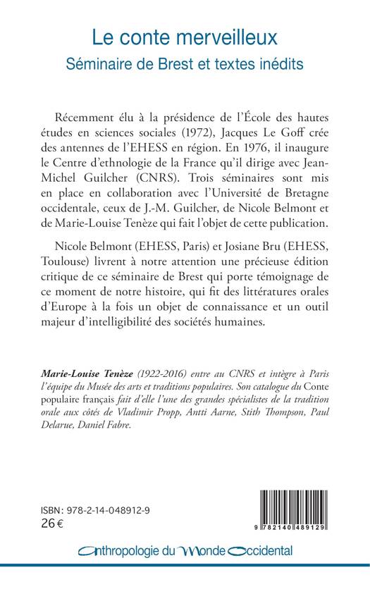 Récemment élu à la présidence de l’École des hautes études en sciences sociales (1972), Jacques Le Goff crée des antennes de l’EHESS en région. En 1976, il inaugure le Centre d’ethnologie de la France qu’il dirige avec Jean-Michel Guilcher (CNRS). Trois séminaires sont mis en place en collaboration avec l’Université de Bretagne occidentale, ceux de J.-M. Guilcher, de Nicole Belmont et de Marie-Louise Tenèze qui fait l’objet de cette publication. Nicole Belmont (EHESS, Paris) et Josiane Bru (EHESS, Toulouse) livrent à notre attention une précieuse édition critique de ce séminaire de Brest qui porte témoignage de ce moment de notre histoire, qui fit des littératures orales d’Europe à la fois un objet de connaissance et un outil majeur d’intelligibilité des sociétés humaines.