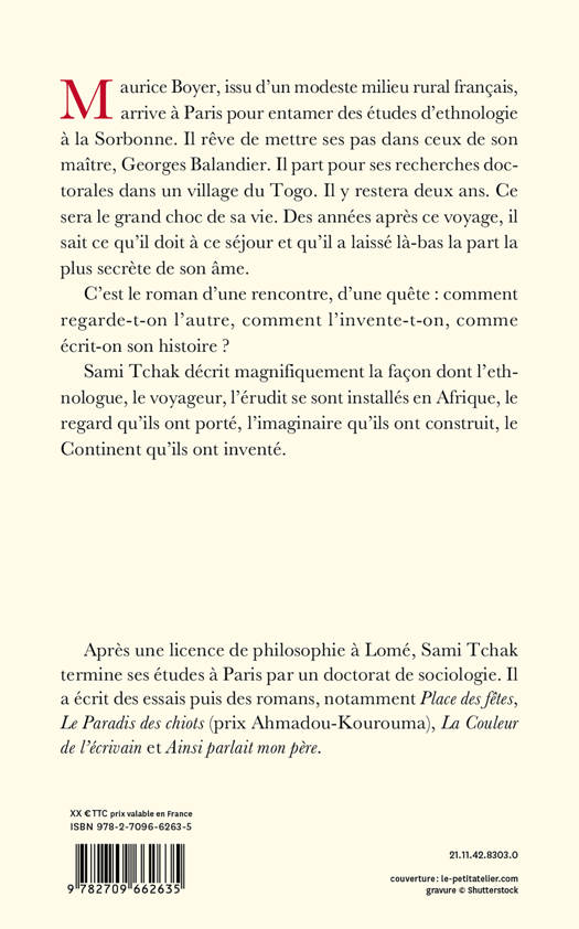 Maurice Boyer, issu d’un modeste milieu rural français, arrive à Paris pour entamer des études d’ethnologie à la Sorbonne. Il rêve de mettre ses pas dans ceux de son maître, Georges Balandier. Il part pour ses recherches doctorales dans un village du Togo. Il y restera deux ans. Ce sera le grand choc de sa vie. Des années après ce voyage, il sait ce qu’il doit à ce séjour et qu’il a laissé là-bas la part la plus secrète de son âme.