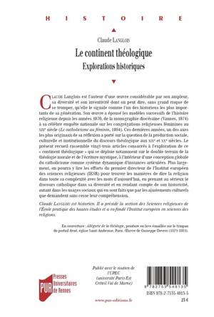 Claude Langlois est l’auteur d’une oeuvre considérable par son ampleur, sa diversité et son inventivité dont on peut dire, sans grand risque de se tromper, qu’elle le signale comme l’un des historiens les plus importants de sa génération. Son oeuvre a épousé les modèles successifs de l’histoire religieuse depuis les années 1970, de la monographie diocésaine (Vannes, 1974) à sa célèbre enquête nationale sur les congrégations religieuses féminines au XIXe siècle (Le catholicisme au féminin, 1984). Ces dernières années, un des axes les plus originaux de sa réflexion a porté sur la question de la production sociale, culturelle et institutionnelle du discours théologique aux XIXe et XXe siècles. Le présent recueil rassemble vingt-trois articles consacrés à l’exploration de ce « continent théologique » qui se déploie notamment sur le double terrain de la théologie morale et de l’écriture mystique, à l’intérieur d’une conception globale du catholicisme comme système dynamique d’instances articulées. Plus largement, on pourra y lire les efforts du premier directeur de l’Institut européen des sciences religieuses (IESR) pour trouver les manières de dire la religion dans toute sa complexité avec les mots d’aujourd’hui, en prenant au sérieux le discours catholique dans sa diversité et en rendant compte de son historicité, autant dans les usages sociaux qui en sont faits que par les ajustements culturels que demandent sans cesse leur compréhension.