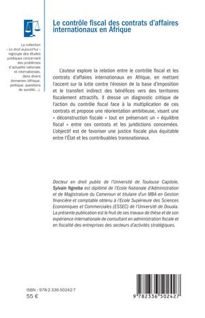 L'auteur explore la relation entre le contrôle fiscal et les contrats d'affaires internationaux en Afrique, en mettant l'accent sur la lutte contre l'érosion de la base d'imposition et le transfert indirect des bénéfices vers des territoires fiscalement attractifs. Il dresse un diagnostic critique de l'action du contrôle fiscal face à la multiplication de ces contrats et propose une réorientation ambitieuse, visant une déconstruction fiscale tout en préservant un équilibre fiscal entre ces contrats et les juridictions concernées. L'objectif est de favoriser une justice fiscale plus équitable entre l'État et les contribuables transnationaux.