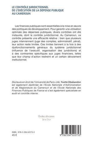 Les finances publiques sont essentielles à la mise en oeuvre des politiques de développement. Pour garantir une utilisation optimale des dépenses publiques, divers contrôles ont été instaurés, dont le contrôle juridictionnel. Au Cameroun, ce contrôle présente une efficacité relative: bien que plusieurs juges interviennent (juge des comptes, administratif, pénal), leur action reste limitée. Ces limites tiennent à la fois à des dysfonctionnements généraux du système juridictionnel (influence de l'exécutif, organisation des juridictions) et à des contraintes spécifiques aux juges financiers, telles que leur champ d'action restreint et un certain dévoiement institutionnel.