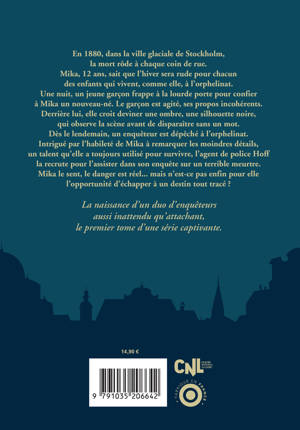 Stockholm, 1880. Mika, onze ans, vit dans un orphelinat depuis toujours. Sa vive intelligence et ses capacités d'observation hors du commun sont repérées par un inspecteur de police qui lui propose de s'associer à lui. Leur mission ? Mettre la main sur un dangereux meurtrier, le Corbeau de Nuit, avant qu'il ne fasse de nouvelles victimes. Le premier tome d'une série d'enquêtes captivantes, au succès international.