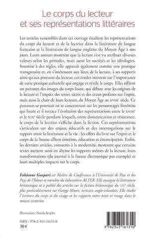 Les articles rassemblés dans cet ouvrage étudient les représentations du corps du lecteur et de la lectrice dans la littérature française et anglaise du Moyen Âge à nos jours. Leurs auteurs montrent que la lecture s'est vu attribuer diverses valeurs selon les périodes historiques, mais aussi selon les sociétés et les idéologies. Soumise à des règles, elle apparaît également comme une pratique transgressive et, en s'intéressant aux lieux de la lecture, à ses supports ainsi qu'aux postures du lecteur, ces études insistent sur l'importance de cette pratique culturelle. Elles offrent un parcours d'images du corps lisant. Celui-ci se poursuit en se concentrant sur les personnages féminins qui lisent et il retrace l'évolution des représentations entre le 18e et le 19e siècle pendant lesquels, entre domestication et résistance, le corps de la lectrice s'affiche dans la fiction.