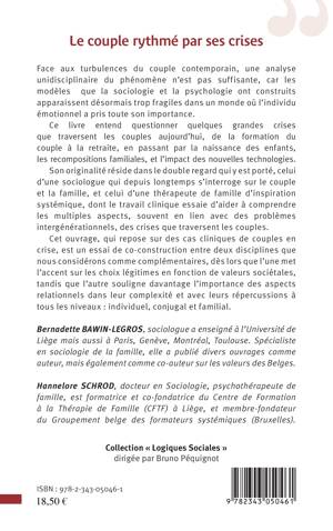 Ce livre entend questionner quelques grandes crises que traversent les couples aujourd'hui, de la formation du couple à la retraite, en passant par la naissance des enfants, les recompositions familiales, et l'impact des nouvelles technologies. L'originalité de cette étude réside dans le double regard qui est porté : celui d'une sociologue qui s'interroge sur le couple et la famille et celui d'un thérapeute de famille d'inspiration systémique.