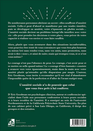 De nombreuses personnes abritent un secret : elles souffrent d’anxiété sociale. Celle-ci peut d’abord se manifester par une tendre timidité, puis se développer en anxiété, voire s’épanouir en phobie sociale… L’anxiété sociale devient un problème lorsqu’elle interfère avec votre vie : elle peut prendre les décisions à votre place, vous priver de votre capacité à réaliser vos envies et vous faire souffrir. Alors, plutôt que vous aventurer dans des situations inconfortables, vous pourriez être tenté de vous convaincre que vous êtes plus heureux ou mieux loti sans rendez-vous, sans vos amis, sans promotion, sans avoir à dire «?non?», et ainsi de suite?; mais qui trompez-vous, si ce n’est vous-même?? Le courage n’est pas l’absence de peur. Le courage, c’est avoir peur et se mettre en selle quand même?! Le «?courage d’être soi?» consiste à avancer vers votre épanouissement, main dans la main avec votre anxiété plutôt qu’attendre qu’elle disparaisse par magie. L’auteur, Eric Goodman, vous invite à reconnaître qu’il est vital d’abandonner l’impossible quête de la perfection et d’aller de l’avant malgré tout.