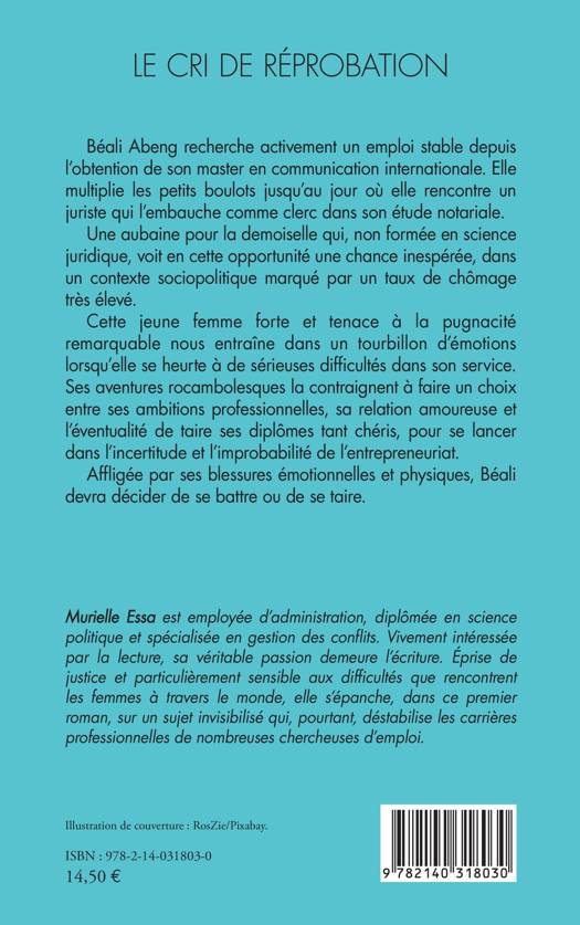 Béali Abeng recherche activement un emploi stable depuis l'obtention de son master en communication internationale. Elle multiplie les petits boulots jusqu'au jour où elle rencontre un juriste qui l'embauche comme clerc dans son étude notariale. Une aubaine pour la demoiselle qui, non formée en science juridique, voit en cette opportunité une chance inespérée, dans un contexte sociopolitique marqué par un taux de chômage très élevé. Cette jeune femme forte et tenace à la pugnacité remarquable nous entraîne dans un tourbillon d'émotions lorsqu'elle se heurte à de sérieuses difficultés dans son service. Ses aventures rocambolesques la contraignent à faire un choix entre ses ambitions professionnelles, sa relation amoureuse et l'éventualité de taire ses diplômes tant chéris, pour se lancer dans l'incertitude et l'improbabilité de l'entrepreneuriat. Affligée par ses blessures émotionnelles et physiques, Béali devra décider de se battre ou de se taire.