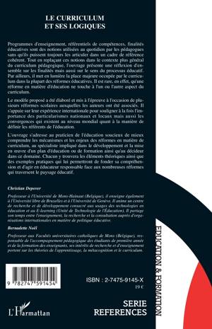 Programmes d'enseignement, référentiels de compétences, finalités éducatives sont des notions utilisées au quotidien par les pédagogues sans qu'ils puissent toujours les articuler dans un cadre de référence cohérent. Tout en replaçant ces notions dans le contexte plus général du curriculum pédagogique, l'ouvrage présente une réflexion d'ensemble sur les finalités mais aussi sur le sens du processus éducatif. Par ailleurs, il met en lumière la place majeure occupée par le curriculum dans la plupart des réformes éducatives.