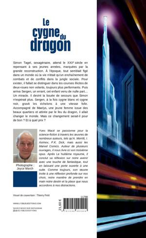 Simon Tagel, sexagénaire, attend le XXII siècle en repensant à ses jeunes années, marquées par la grande reconstruction. À l'époque, tout semblait figé dans un monde où la vie n'était qu'un enchaînement de combats et de conflits dans la jungle sociale. Pour exister, il fallait se distinguer dans les courses illicites de deux-roues non volants, toujours plus performants. Puis arriva Sergen, un errant, cet enfant venu de nulle part... Un miracle. Il devint la bouée de secours que Simon n'espérait plus. Sergen, à la fois cygne blanc et cygne noir, gravit les échelons à une vitesse folle. Accompagné de Maelys, une jeune femme issue des beaux quartiers et attirée par le feu du dragon, il allait changer le monde. Mais ce changement serait-il pour de bon ? Et à quel prix ?