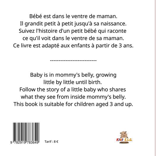 Bébé est dans le ventre de maman. Il grandit petit à petit jusqu'à sa naissance. Suivez l'histoire d'un petit bébé qui raconte ce qu'il voit dans le ventre de sa maman. Ce livre est adapté aux enfants à partir de 3 ans.
