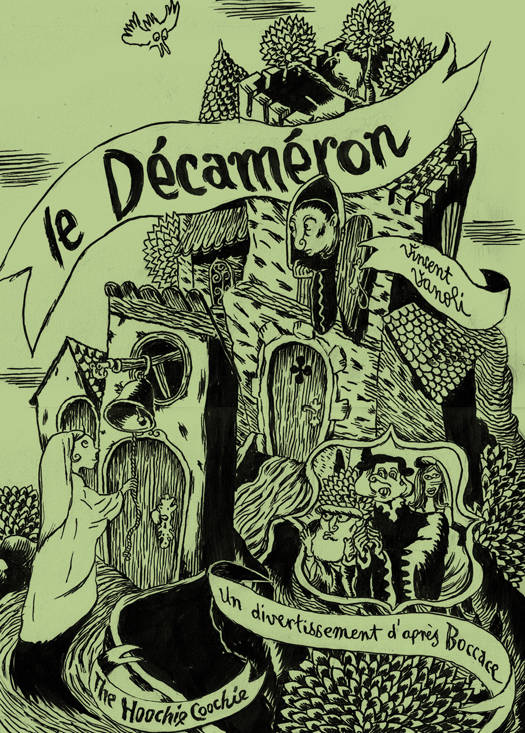Toscane, XIVe siècle. Alors que la Grande Peste décime allégrement l’Europe, dix jeunes gens se réfugient à la campagne et égayent leurs journées en racontant des histoires à tour de rôle. Dix contes par journée fois dix jours nous donnent les cent récits formant le Décaméron écrit par Boccace entre 1348 et 1351. Fabliaux, paraboles, anecdotes traitant d'amours heureuses ou malheureuses, grivoises ou chevaleresques, raillant le clergé et la cupidité d'une époque où l'épidémie de bubons a rejeté toutes valeurs morales aux oubliettes. C'est dans cette somme que Vincent Vanoli puise la matière de son album et traite de ce Moyen Âge tardif, cher au catalogue The Hoochie Coochie avec le trait expressionniste et charbonneux qu’on lui connaît. Tantôt drôle, tantôt cruel, cette adptation du Décaméron par Vincent Vanoli a été initialement publiée aux défuntes éditions Ego Comme X au tournant du XXIe siècle. Pour cette version remaniée, The Hoochie Coochie s’est adjoint les services d’un préfacier hors pair pour introduire cette œuvre : le légendaire Ambre.