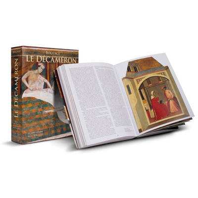 Une fresque fascinante de plus de cinq cents ouvres d'art en couleurs vient éclairer cette émouvante comédie humaine et amoureuse : les illustrations ornant les premières éditions de l'ouvrage, les dessins -tout récemment authentifiés- à la plume et à l'aquarelle de Boccace lui-même, les magnifiques miniatures du Manuscrit du Maître de la Cité des Dames, conservé au Vatican, et du Manuscrit Ceffini, conservé à la Bibliothèque nationale de France, les scènes somptueuses réalisées sur des coffres de mariages et des plateaux d'accouchée.