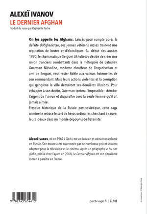 Par amour, un soldat russe démobilisé dérobe le contenu d'un fourgon blindé : ainsi s'achève la longue histoire de la puissante Union des vétérans de l'Afghanistan. Ce roman raconte le sort des vétérans russes de la première guerre d'Afghanistan, offrant une peinture de l'ère post-soviétique et de l'avènement de Vladimir Poutine. Un roman noir palpitant dans la grande tradition russe du roman fleuve, foisonnant et épique, traversé par une histoire d'amour poignante.