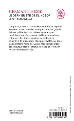 Quatre nouvelles, qui sont quatre récits aux sourdes pesan-teurs, où toute la magie littéraire de Hermann Hesse se tient ramassée.