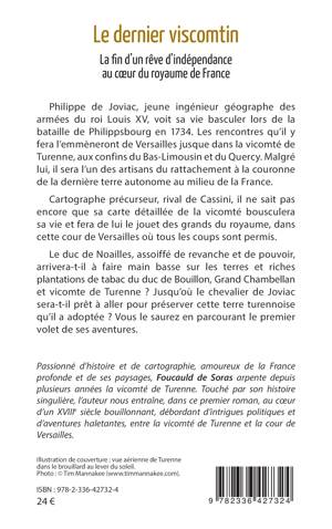 Philippe de Joviac, jeune ingénieur géographe des armées du roi Louis XV, voit sa vie basculer lors de la bataille de Philippsbourg en 1734. Les rencontres qu'il y fera l'emmèneront de Versailles jusque dans la vicomté de Turenne, aux confins du Bas-Limousin et du Quercy. Malgré lui, il sera l'un des artisans du rattachement à la couronne de la dernière terre autonome au milieu de la France. Cartographe précurseur, rival de Cassini, il ne sait pas encore que sa carte détaillée de la vicomté bousculera sa vie et fera de lui le jouet des grands du royaume, dans cette cour de Versailles où tous les coups sont permis. Le duc de Noailles, assoiffé de revanche et de pouvoir, arrivera-t-il à faire main basse sur les terres et riches plantations de tabac du duc de Bouillon, Grand Chambellan et vicomte de Turenne ? Jusqu'où le chevalier de Joviac sera-t-il prêt à aller pour préserver cette terre turennoise qu'il a adoptée ? Vous le saurez en parcourant le premier volet de ses aventures.
