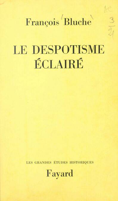 La thèse de François Bluche consacrée aux Magistrats du Parlement de Paris au XVIIIe siècle est l’étude la plus neuve et la plus complète qui ait été consacrée à la société judiciaire à cette époque. L’Académie française, pour récompenser les livres d’histoire de France dispose d’un grand prix fondé par le baron Gobert. Mais l’acte de fondation porte que l’ouvrage honoré devra être non seulement le fruit de recherches approfondies dans un domaine non encore exploré, mais un ouvrage « écrit ». C’est donc avec justice que l’Académie décerna son prix le plus important aux Magistrats du Parlement de Paris car François Bluche, travailleur infatigable, heureux chercheur, érudit scrupuleux est aussi un écrivain à la langue colorée, précise, rapide. Il s’est spécialisé dans l’étude de la noblesse, prouvant qu’au XVIIIe siècle, il n’existe plus qu’une noblesse, robe et épée étant désormais unies par mille liens familiaux. C’est ainsi qu’il étudie les Magistrats du Grand Conseil, de La Cour des. Monnaies, Les Honneurs de la Cour, L’anoblissement par les charges (en collaboration avec Pierre Darye), Les Pages de la grande écurie... portant la lumière dans des questions jusqu’alors très obscures et pleines de fausses notions. Cette fois, François Bluche, pour la collection des Grandes Études Historiques abandonne les institutions et la société monarchique, le droit nobiliaire, les services de l’État et de la Cour de France pour un grand, un très grand sujet européen. L’expression « despotisme éclairé » est entière dans les manuels à peu près en même temps que le baroque. Mais c’est une expression assez obscure, en ce sens qu’elle recouvre des philosophies politiques et des systèmes de gouvernement qui du Danemark au Portugal, de la Prusse à Naples, de la Russie à l’Espagne, diffèrent l’un de l’autre. Ce sujet riche, passionnant n’a fait l’objet d’aucune synthèse. Aussi le livre de François Bluche, complet, nuancé, appuyé sur les textes du XVIIIe siècle, riche en formules frappantes, a-t-il un immense intérêt de mise au point et de nouveauté. Le despotisme éclairé véhicule de dures réalités, comme la monarchie prussienne de Frédéric II, des essais de réforme, des mythes, certaines façons d’administrer, une philosophie des sociétés, une puissance certaine de propagande, tout ce qui fait le prodigieux intérêt de « l’âge des lumières » à la veille de notre Révolution. Cet âge a eu son idéal d’État, son « modèle » politique, plus dur, plus absolu que la vieille monarchie semi-religieuse de Louis XIV. Mais de même que la France a presque refusé le baroque et le rococo, elle n’a pas admis cette forme de despotisme où l’État s’est fait Dieu, où il est lui-même sa fin et sa justification. Notre seul « despote éclairé » est sans doute Napoléon Ier, mais il régnait sur une nation révolutionnée.