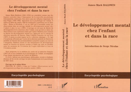 JM.Baldwin est considéré comme une des figures centrales dans l'émergence de la nouvelle psychologie fonctionnaliste américaine. Cet ouvrage est un essai de théorie du développement de la conscience chez l'enfant. Baldwin a construit sa théorie en s'appuyant sur le concept de sélection naturelle de Darwin et il y ajoute un point majeur sur la "sélection organique". Il fournit ici une interprétation du développement mental en fonction de facteurs sociaux.