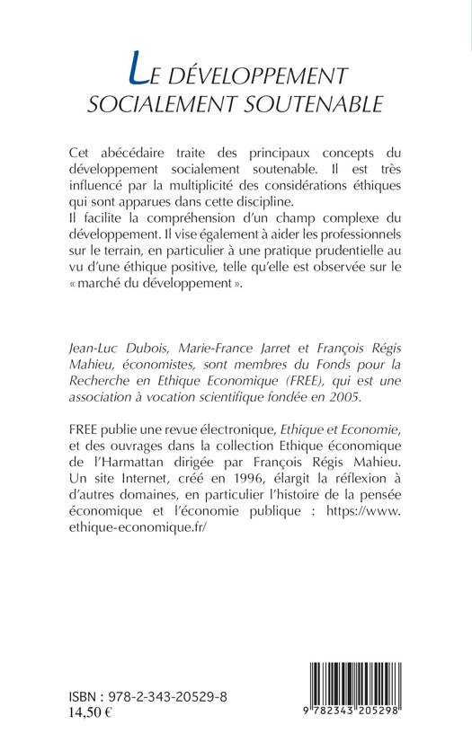 Cet abécédaire traite des principaux concepts du développement socialement soutenable. Il est très influencé par la multiplicité des considérations éthiques qui sont apparues dans cette discipline. Il facilite la compréhension d'un champ complexe du développement et vise également à aider les professionnels sur le terrain, en particulier à une pratique prudentielle au vu d'une éthique positive, telle qu'elle est observée sur le « marché du développement ».