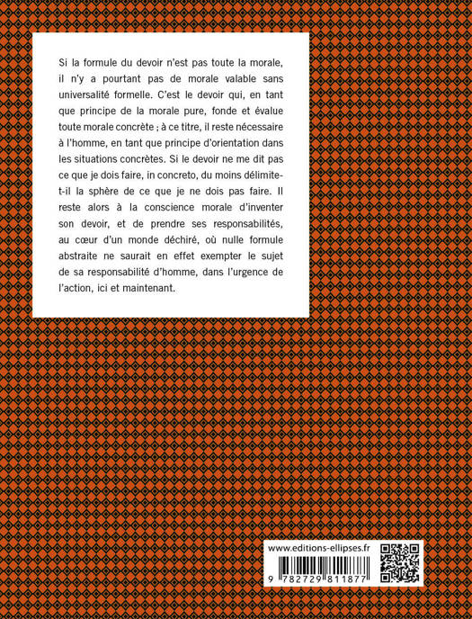 Si la formule du devoir n'est pas toute la morale, il n'y a pourtant pas de morale valable sans universalité formelle. C'est le devoir qui, en tant que principe de la morale pure, fonde et évalue toute morale concrète ; à ce titre, il reste nécessaire à l'homme, en tant que principe d'orientation dans les situations concrètes. Si le devoir ne me dit pas ce que je dois faire, in concreto, du moins délimite-t-il la sphère de ce que je ne dois pas faire. Il reste alors à la conscience morale d'inventer son devoir, et de prendre ses responsabilités, au cœur d'un monde déchiré, où nulle formule abstraite ne saurait en effet exempter le sujet de sa responsabilité d'homme, dans l'urgence de l'action, ici et maintenant.