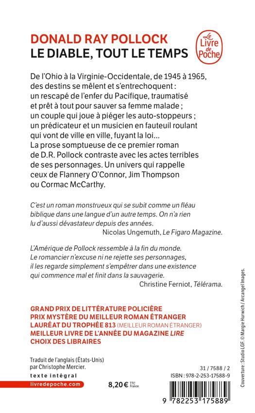 De l'Ohio a la Virginie-Occidentale, de 1945 a 1965, des destins se melent et s'entrechoquent: un rescape de l'enfer du Pacifique, traumatise et pret a tout pour sauver sa femme malade; un couple qui joue a pieger les auto-stoppeurs; un predicateur et un musicien en fauteuil roulant qui vont de ville en ville, fuyant la loi... La prose somptueuse de ce premier roman de D. R. Pollock contraste avec les actes terribles de ses personnages. Un univers terrifiant que la critique n'hesite pas a comparer a ceux de Flannery O'Connor, Jim Thompson ou Cormac McCarthy. C'est un roman monstrueux qui se subit comme un fleau biblique dans une langue d'un autre temps. On n'a rien lu d'aussi devastateur depuis des annees. Nicolas Ungemuth, Le Figaro Magazine.Pollock sublime l'immoral, touche par sa prose lumineuse et donne ici un livre marquant, bien dans la demesure americaine. Liliane Kerjan, La Quinzaine litteraire.