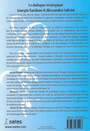 Communiquer en persuadant: techniques avancées de changement Le processus est une sorte de « danse » interactive entre des questions qui créent des réponses et des réponses qui permettent de construire les questions stratégiques suivantes, jusqu’au point où l’interlocuteur déclare avoir changé sa position grâce à ce qu’il a découvert au moyen du dialogue. Fort d’une expérience de plus de vingt-cinq ans en qualité de thérapeute et de consultant dans le domaine clinique, Giorgio Nardone a mis au point, avec ses collaborateurs, une technique à l’efficacité surprenante pour conduire un entretien au cours duquel l’interlocuteur ou le patient finissent par changer leurs convictions les plus enracinées. La valeur du dialogue stratégique réside dans le fait que ce changement n’est pas imposé de l’extérieur, mais résulte du dénouement naturel du nœud qui crée le malaise et le problème. C’est une technique à la fois nouvelle et très ancienne, qui prend appui sur la rhétorique classique et se conjugue avec succès à la thérapie brève. Dans cet ouvrage – indispensable à tous les professionnels de la communication,qui intéressera également le lecteur non spécialiste – Giorgio Nardone et Alexandre Salvini mettent au point une méthode encore plus raffinée, qui incite l’interlocuteur à considérer sa situation selon une nouvelle perspective, en douceur, comme si le changement était une découverte guidée par celui qui demande de l’aide, et pas par le thérapeute.