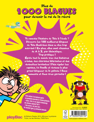 Tu connais l'histoire de Toto à l'école ? Découvre les 1000 meilleures blagues de Toto illustrées dans ce dico trop marrant ! En plus, elles sont classées de A à Z, par thématique. Trop pratique ! Épate tout le monde avec des histoires crados, des charades hilarantes et des devinettes tordantes ! Fais rigoler tes copains, ta famille et deviens le plus grand blagueur de la galaxie ! Bons moments et fous rires garantis !