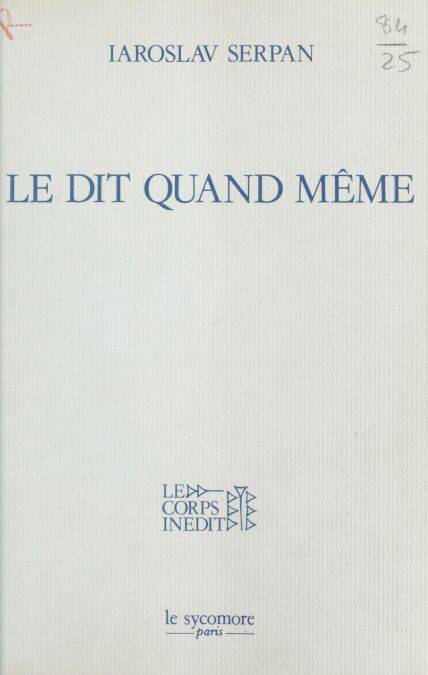 Chacun connaît la peinture de Iaroslav Serpan : surréalisme, abstraction lyrique, ensemblisme… Qui connaît Serpan écrivain ? Le propos de ce livre est de révéler une écriture exigeante et moderne, qui existe par elle-même, originale et belle. Mis à part le recueil « D'un regard oubliable pour qu'il soit » (1977), les textes de Serpan n'ont pas trouvé grâce auprès des éditeurs. C'était un peintre, non un écrivain à part entière. Dans ce livre : les œuvres littéraires de Serpan, écrites entre 1968 et 1975 : « Mémoire destituée mémoire sans voisinage », « Tu t'empares du feu et c'est ton nom qui brûle », « Séquestres d'écarts en écarts », « Morte, la révolution se théorise », « Accès majeur lisibilité d'adulte », « Estuaires », et une anthologie des travaux antérieurs à 1968 : poèmes surréalistes, textes critiques sur la peinture, réflexions politiques et esthétiques. On découvrira un Serpan passionné pour ses arts, et vivant chaque instant comme autant de secondes arrachées au monde mécanique et mort qu'il n'a cessé de violenter. On lira mai 1968 aux prises avec les exigences de l'art, l'air vicié du temps présent en train d'éclater l'espace-langue. Chacun ressentira cette écriture avec ses yeux, ses rêves et sa chair, peu resteront insensibles à ses irruptions violentes. Iaroslav Serpan, un écrivain du XXe siècle, un de ceux qui ouvrent les portes de l'avenir.