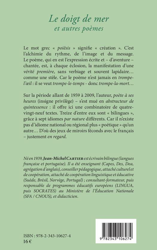 Le mot grec "poiêsis" signifie "création". C'est l'alchimie du rythme, de l'image et du message. Le poème, qui en est l'expression écrite et chantée, est, à chaque éclosion, la manifestion d'une vérité première, sans verbiage et souvent lapidaire... comme une stèle. Car le poème n'est jamais en trompe-l'oeil : il se veut trompe-le-temps - donc trompe-la-mort... Sur la période allant de 1959 à 2009, l'auteur s'est mué en abstracteur de quintessence pour offrir un recueil de quatre-vingt-neuf textes, dont treize "bilingues".