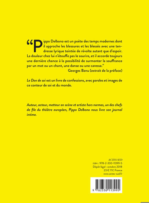 "Pippo Delbono est un poète des temps modernes dont il approche les blessures et les blessés avec une tendresse lyrique teintée de révolte autant que d'espoir. La douleur chez lui n'étouffe pas le sourire, et il accorde toujours une dernière chance à la possibilité de surmonter la souffrance par un mot ou un chant, une danse ou une caresse." Georges Banu, extrait de la préface.