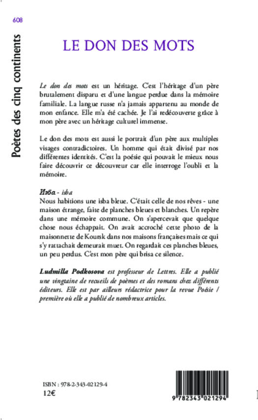 Le don des mots est un héritage, celui d'un père brutalement disparu et d'une langue perdue dans la mémoire familiale. La langue russe n'a jamais appartenu à l'enfance de l'auteur. Elle lui a été cachée. Elle l'a redécouverte grâce à son père avec un héritage culturel immense.