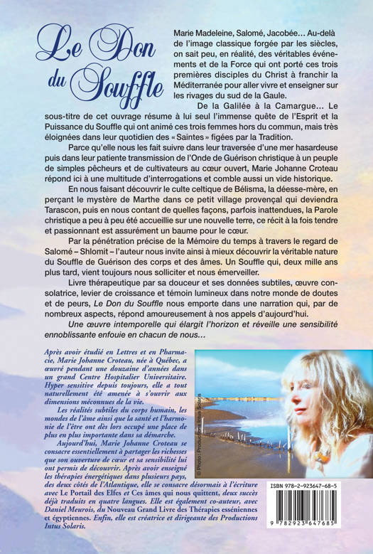 Marie Madeleine, Salomé, Jacobée… Au-delà de l’image classique forgée par les siècles, on sait peu des véritables événements qui ont porté ces premières disciples du Christ à franchir la Méditerranée pour aller vivre et enseigner sur les rivages du sud de la Gaule. De la Galilée à la Camargue… ce sous-titre résume à lui seul l’immense quête de l’Esprit et la Puissance du Souffle qui ont animé ces trois femmes hors du commun, mais très éloignées dans leur quotidien des ¨Saintes¨ figées par la Tradition. Parce qu’elle nous les fait suivre dans leur traversée d’une mer hasardeuse puis dans leur patiente transmission de l’Onde de Guérison christique à un peuple de simples pêcheurs et de cultivateurs au cœur ouvert, l'auteur répond ici à une multitude d’interrogations et comble aussi un vide historique. En nous faisant découvrir le culte celtique de Bélisma, la déesse-mère, en perçant le mystère de Marthe dans ce village provençal qui deviendra Tarascon, puis en nous contant de quelles façons la Parole christique a été accueillie sur une nouvelle terre, ce récit tendre et passionnant tirant sa source des Annales akashiques est assurément un baume pour le cœur. Livre thérapeutique par ses données subtiles, œuvre consolatrice, levier de croissance pour notre monde de doutes et de peurs, Le Don du Souffle est une œuvre intemporelle qui élargit l'horizon....