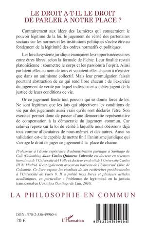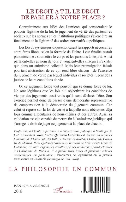 Contrairement aux idées des Lumières qui consacraient le pouvoir légitime de la loi, le jugement de vérité des partenaires sociaux sur les normes et les institutions politiques s'avère être au fondement de la légitimité des ordres normatifs et politiques. Les lois du système juridique énonçaient les rapports nécessaires entre êtres libres, selon la formule de Fichte. Leur finalité restait platonicienne: soumettre le corps et les passions à l'esprit. Ainsi parlaient-elles au nom de tous et vouaient-elles chacun à n'exister que dans un animisme collectif. Mais leur promulgation faisait pourtant abstraction de ce qui rend libre chacun: de l'exercice du jugement de vérité par lequel individus et sociétés jugent de la justice de leurs conditions de vie. Or ce jugement fonde tout pouvoir qui se donne force de loi. Ne sont légitimes que les lois qui objectivent les conditions de vie par des jugements aussi vrais qu'ils sont déclarés l'être. Son exercice permet donc de passer d'une démocratie représentative de compensation à la démocratie du jugement commun. Car celui-ci repose sur la loi de vérité à laquelle nous obéissons déjà tous comme allocutaires de nous-mêmes et des autres. Aussi sa validation est-elle capable de mettre fin à l'animisme juridique qui s'arroge le droit de juger ce jugement à la place de chacun.