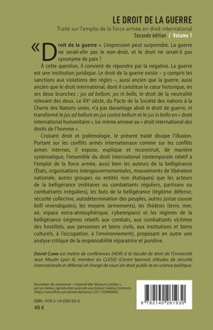« Droit de la guerre ». L’expression peut surprendre. La guerre ne serait-elle pas le non-droit, et le droit ne serait-il pas synonyme de paix ? À cette question, il convient de répondre par la négative. La guerre est une institution juridique. Le droit de la guerre existe, aussi ancien que la guerre et que le droit international, dont il constitue le coeur historique. Le XXe siècle, du Pacte de la Société des nations à la Charte des Nations unies, n’a pas davantage aboli le droit de guerre, ni transformé le jus ad bellum en jus contra bellum et le jus in bello en « droit international humanitaire ». Croisant droit et polémologie, le présent traité dissipe l’illusion. Portant sur les conflits armés internationaux comme sur les conflits armés internes, il expose, explique et reconstruit, l’ensemble du droit international contemporain relatif à l’emploi de la force armée, aussi bien les auteurs de la belligérance que ses acteurs, ses buts et moyens, ses théâtres d'opération et ses régimes, proposant en outre une analyse critique de la responsabilité réparatrice et punitive.