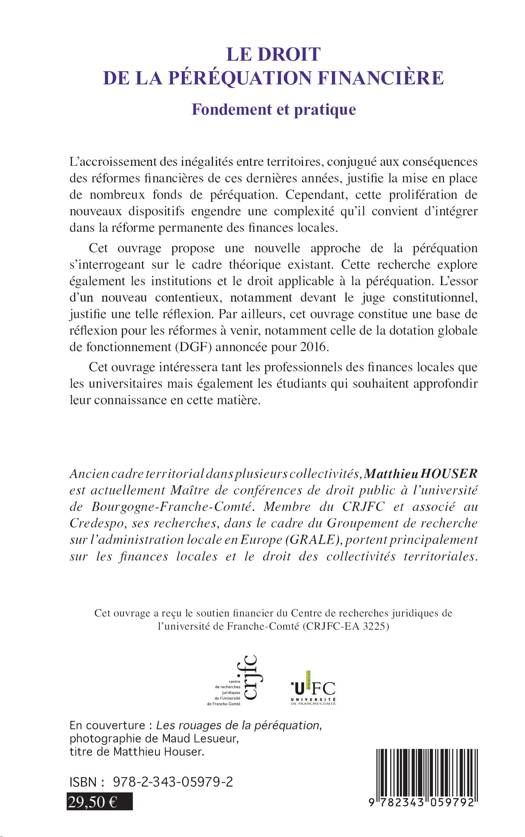 L'accroissement des inégalités entre territoires justifie la mise en place de nombreux fonds de péréquation. Cet ouvrage propose une nouvelle approche de la péréquation s'interrogeant sur le cadre théorique existant. Cette recherche explore également les institutions et le droit applicable à la péréquation et constitue une base de réflexion pour les réformes à venir, notamment celle de la dotation globale de fonctionnement annoncée pour 2016.