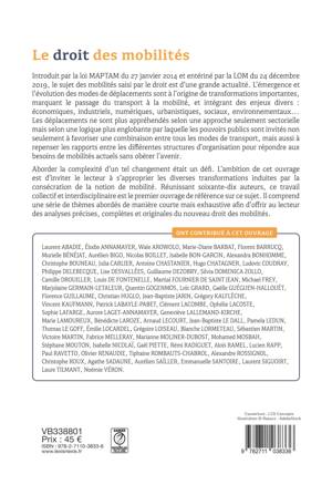 Sous un angle principalement juridique mais avec des ouvertures à d'autres champs disciplinaires, le présent ouvrage invite les auteurs à porter une analyse à la fois inductive et prospective des transformations induites par les mobilités.