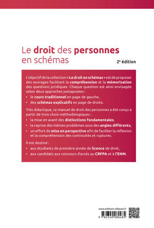L’objectif de la collection « Le droit en schémas » est de proposer des ouvrages facilitant la compréhension et la mémorisation des questions juridiques. Chaque question est ainsi envisagée selon deux approches juxtaposées :