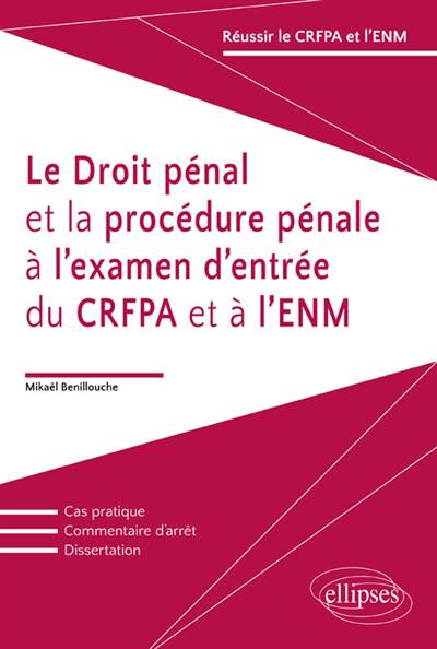 L’ouvrage permet de préparer les différentes épreuves du concours de l’ENM et de l’examen d’entrée au CRFPA : dissertations, commentaires d’arrêts ou de textes et cas pratiques. Une méthodologie générale de ces différents exercices est proposée avant d’être appliquée à une liste de sujets susceptibles d’être proposés ou ayant déjà été proposés.