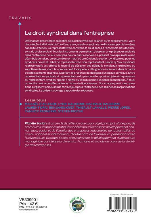 Défenseurs des intérêts collectifs de la collectivité des salariés qu'ils représentent, voire des intérêts individuels de l'un d'entre eux, tous les syndicats ne disposent pas de la même capacité d'action. La représentativité constitue la clé d'accès à l'ensemble des déclinaisons du droit syndical. Tous les instruments permettant d'assurer une présence syndicale dans l'entreprise ne leur sont pas pour autant réservés. Le présent ouvrage invite à une déambulation dans un ensemble normatif où se côtoient la section syndicale et, pour les syndicats privés du label de représentativité, son représentant, tandis qu'aux syndicats représentatifs est offerte la faculté de désigner des délégués syndicaux, ordinaires ou supplémentaires, dont le nombre croît lorsque leur désignation intervient dans le cadre d'établissements distincts, justifiant la présence de délégués syndicaux centraux. Entre représentation syndicale et représentation du personnel un pont est jeté via la présence du représentant syndical appelé à siéger au sein du comité social et économique. À tous, protection est accordée contre le risque de licenciement. Sur chaque point, des questions surgissent porteuses de forts enjeux pour l'entreprise, ses salariés, les organisations syndicales. Le présent ouvrage y apporte des réponses.