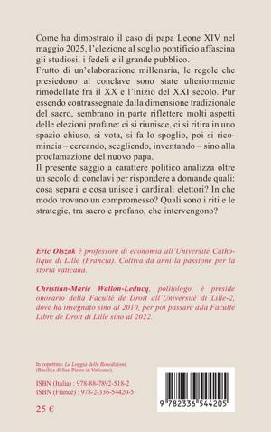 Il presente saggio a carattere politico analizza oltre un secolo di conclavi per rispondere a domande quali : cosa separa e cosa unisce i cardinali elettori ? In che modo trovano un compromesso ? Quali sono i riti e le strategie, tra sacro e profano, che intervengono ?