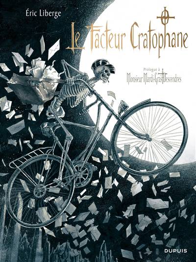 À sa parution, "Monsieur Mardi-Gras Descendres" fit grand bruit : une histoire complexe, des sujets denses, un trait sombre et noueux ; en quatre tomes, Éric Liberge y racontait avec un immense talent graphique un purgatoire étrange dans lequel tombait par accident un cartographe, Victor Tourterelle. Dans un Moyen-Âge pieux et sévère, Philibert Étienne ordonne à son subalterne de réécrire les termes de la vie après la mort. Sans savoir qu'il va s'y trouver projeté et y contempler de ses propres yeux sa maudite création : une cité entière faite d'ossements, peuplée de squelettes sans chair mais à la conscience claire, repaire de voleurs et de criminels condamnés à errer sans fin sous un ciel plus noir que l'encre. La cratophanie est la représentation symbolique du pouvoir... et les lecteurs de la saga baroque d'Éric Liberge savent combien le personnage du facteur est un homme (un squelette !) de pouvoir. C'est à sa découverte que nous invite ce copieux prologue à Monsieur Mardi-Gras Descendres.