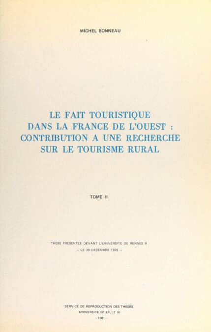 Le fait touristique dans la France de l'Ouest : contribution à une recherche sur le tourisme rural (2) EBOOK