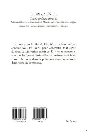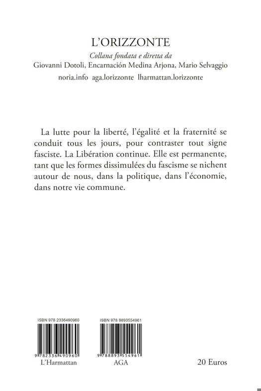 Le fascisme s’est terriblement adapté aux temps que nous vivons, comme le chiendent le plus durable. C’est à nous de le dénicher et de le combattre, et de gagner cette merveilleuse bataille de liberté. La haine, le racisme, la peur, l’idée de peuple-nation, le désaccord-trahison, le mythe du totalitarisme et de l’État fort sont autour de nous. Ne pas lâcher, jamais, tant que sur la planète il y aura une ombre de fascisme. Se méfier absolument de tous ceux qui affirment : « Autrefois, c’était mieux ! ». Il faut regarder l’avenir et non le passé : un avenir où le fascisme aura disparu à jamais. Les slogans et les invectives ne suffisent pas. Il faut agir, par la pensée, par l’éducation, par l’engagement. Le mot fascisme donne encore à penser. Une partie de son idéologie est éternelle. Elle fait partie de l’homme, de son côté mal, en opposé à son côté bien. Partout, en Europe, la droite avance. Il faut reconnaître le danger à temps. La lutte pour la liberté, l’égalité et la fraternité se conduit tous les jours, pour contraster tout signe fasciste. La Libération continue. Elle est permanente, tant que les formes dissimulées du fascisme se nichent autour de nous, dans la politique, dans l’économie, dans notre vie commune.