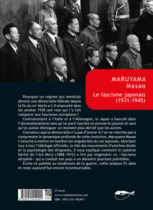 Pourquoi un regime qui semblait devenir une democratie liberale depuis la fin du XIXe siecle a-t-il emprunte dans les annees 1930 une voie qui l'a fait comparer aux fascismes europeens ? Contrairement a l'Italie et a l'Allemagne, le Japon a bascule dans l'ultranationalisme sans qu'un parti fasciste ne prenne le pouvoir et sans qu'on puisse distinguer un moment plus decisif que les autres. Convaincu que la democratie n'a pas d'avenir si l'on ne cherche pas a comprendre la dynamique profonde de cette evolution, Maruyama Masao s'attache a mettre en lumiere les singularites du cas japonais. Abordant tour a tour l'ideologie officielle, le role des mouvements d'extreme droite et la psychologie des dirigeants, il nous explique comment le systeme herite de l'ere Meiji (1868-1912) a fini par engendrer ce fascisme atrophie qui a conduit son pays a un desastre pourtant previsible. Ecrite et publiee au lendemain de la guerre, cette analyse fit date et reste aujourd'hui encore incontournable.